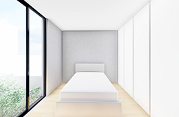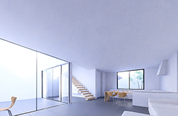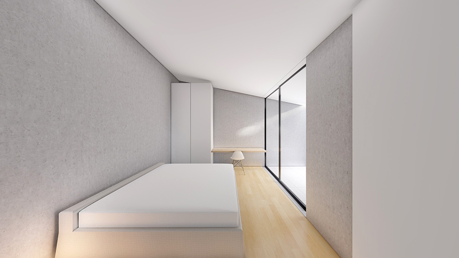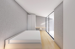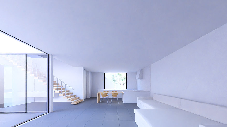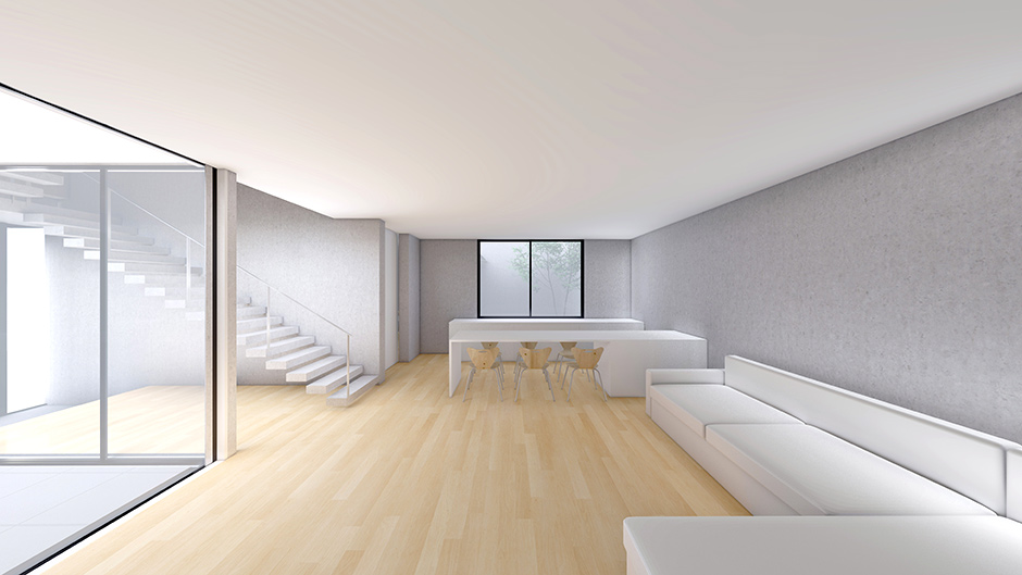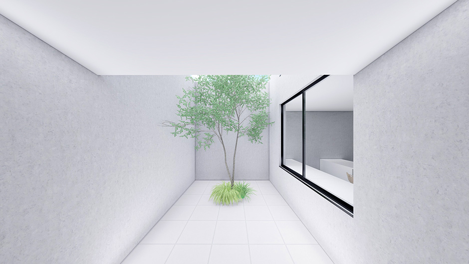 They chose readjustment area where has easy access from air port and requested flat building. Being timeless and sustainable. Two inner courts are located in the box so that privacy is secured while nature sky, light, wind, and rain can be felt even in urban areas. It aims to live life as a part of nature that is essence of human habitation.